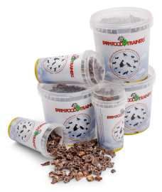 El equipo de Farm Food buscó por mucho tiempo una golosina de premio limpia que también fuera saludable. Esto dio origen a Trainers, a base de corazón de res puro, secado y cortado en pequeñas rebanadas. Este producto ha sido particularmente bien recibido por dueños y perros.